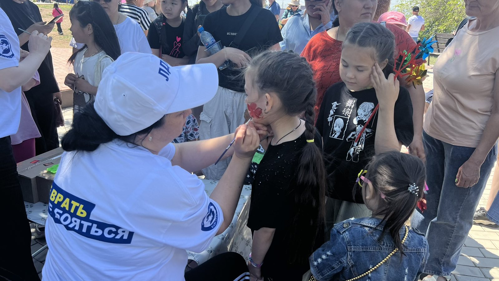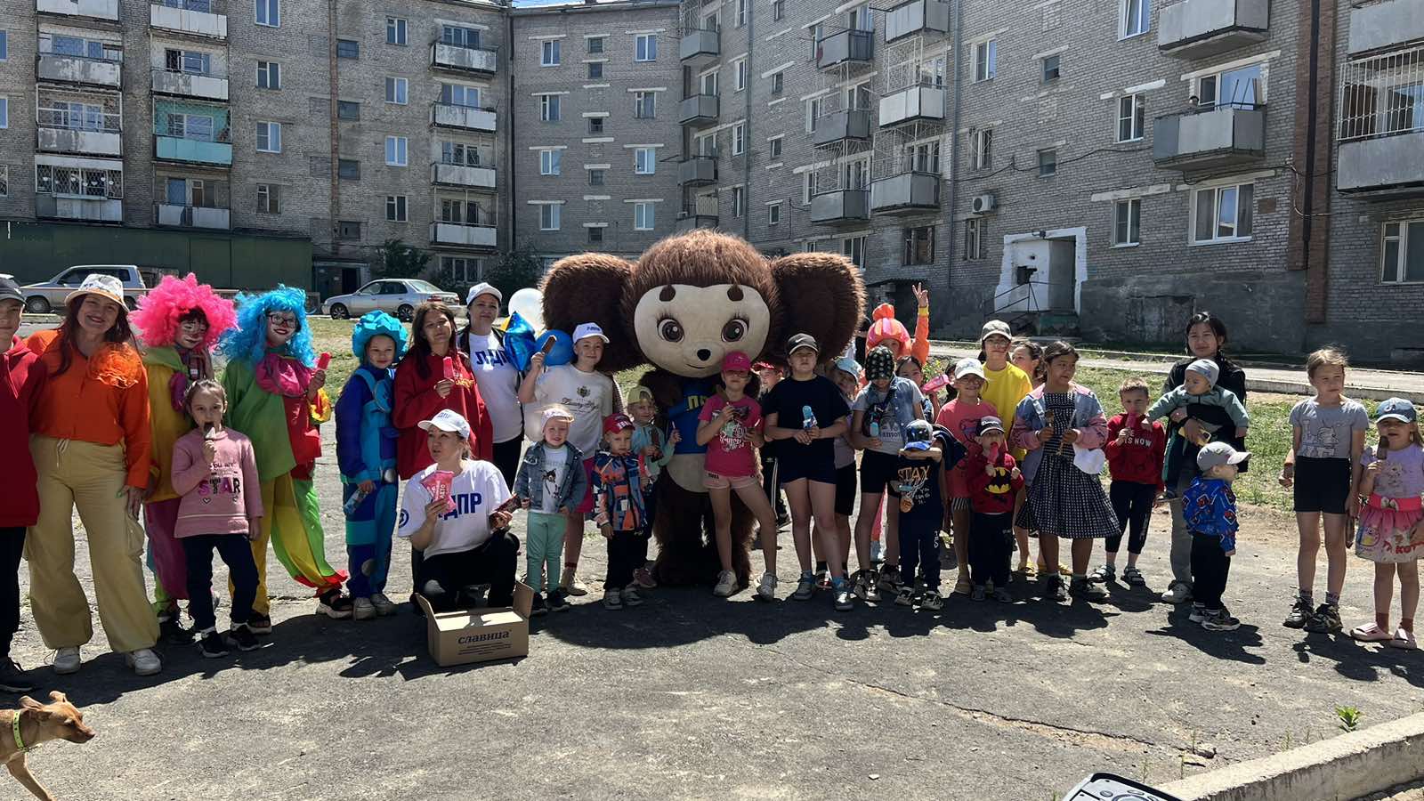 На улицах города детей встречал Чебурашка, который сразу привлек внимание малышей и взрослых. В этот день все дети получили в подарок мороженое, разноцветные воздушные шары и мыльные пузыри, что добавило мероприятию еще больше радости и веселья. Также, депутаты наносили всем желающим аквагрим.