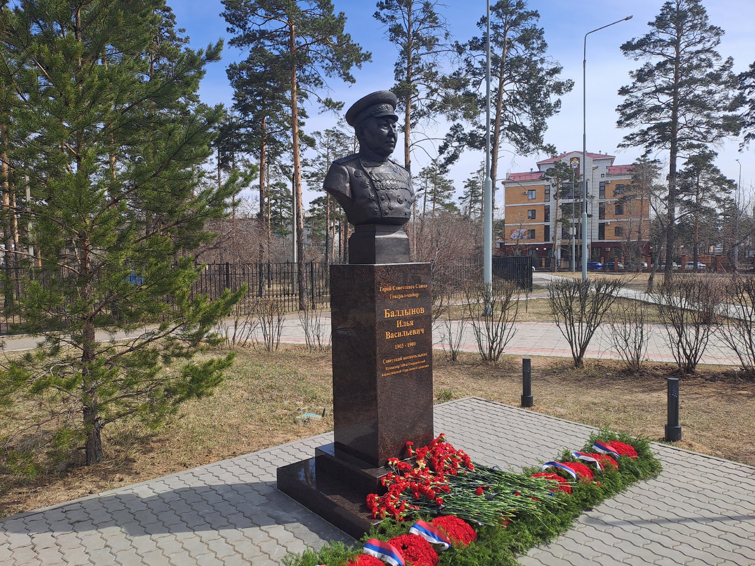 В преддверии Дня Победы в парке имени Орешкова открыли новый памятник – бюст Героя Советского Союза, генерал-майора Ильи Васильевича Балдынова, легендарного командира, отличившегося в годы Великой Отечественной войны