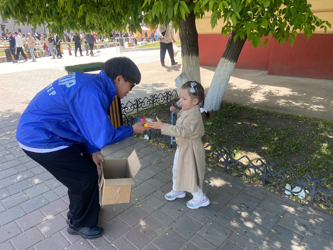 Активисты вышли на площадь с воздушными шарами и вкусным мороженым, чтобы лично поздравить детей с их праздником. Каждый ребенок получил яркую эмоцию в первый день лета.