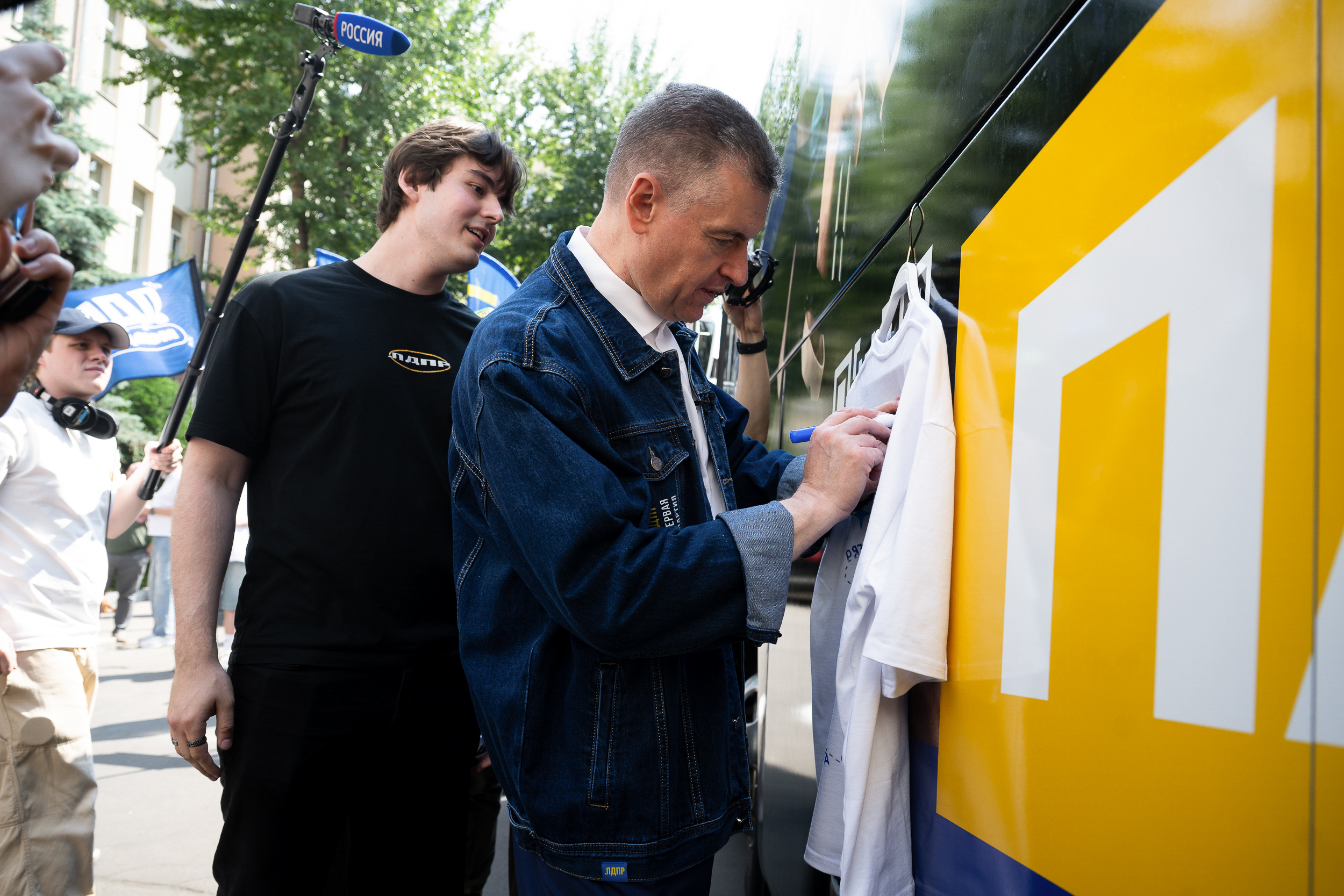 Также перед запуском автобуса Леонид Слуцкий дал молодым партийцам напутственные слова и поставил первую подпись на футболке с символикой ЛДПР, которую будут подписывать участники проекта во всех городах тура.бур